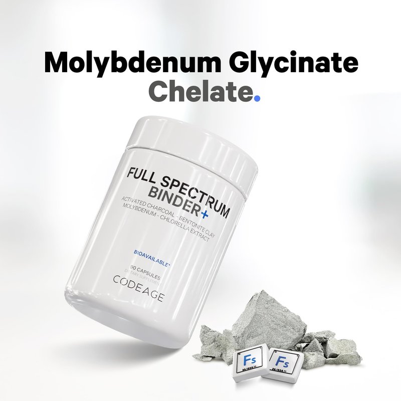 - Molybdenum: Codeage Binder + provides 100 mcg of Molybdenum as Albion Molybdenum Glycinate Chelate (formerly known as TRAACS bisglycinate). Molybdenum glycinate is a trace element cofactor of various enzymes that could be involved in various processes of the body.*
