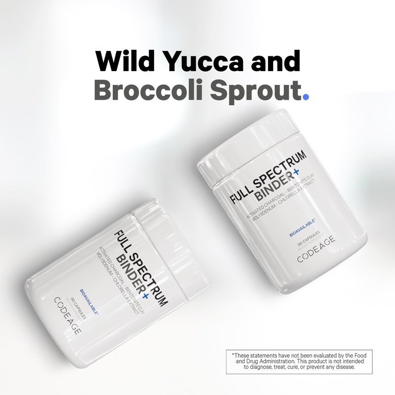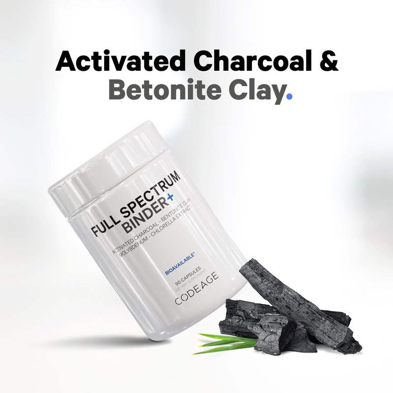 - Vegan binder supplement: Codeage Binder + offers a premium blend of activated charcoal, bentonite clay, humic acid, fulvic acid, organic broccoli sprouts, organic chlorella extract, wild yucca root extract, and molybdenum in an all-in-one formula. This solution is easy to use.