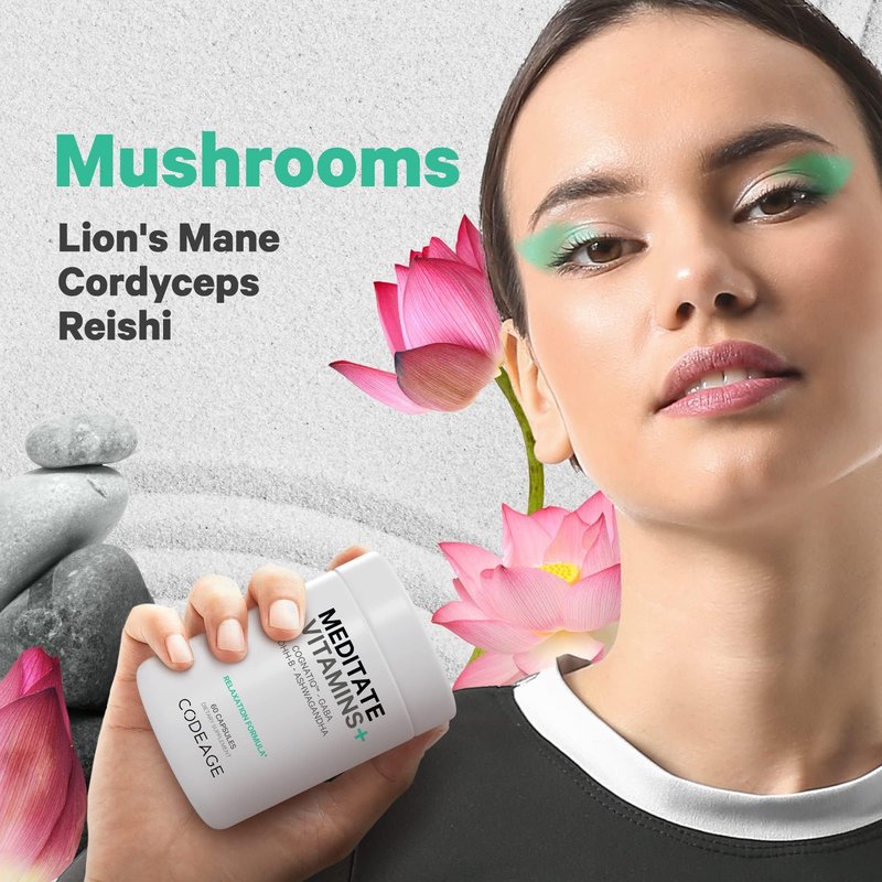 - Codeage Meditate Vitamins+ is formulated to help promote relaxation, and support clarity, focus, and immunity.* With advanced ingredients such as CognatiQ, DHH-B, GABA, ashwagandha, organic mushrooms, and blueberries.