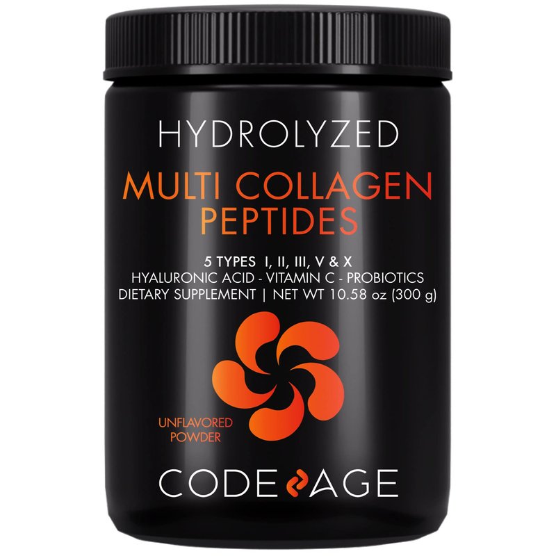 - All-in-One Collagen Peptides Powder Supplement: Codeage Black Edition hydrolyzed multi collagen + vitamin C powder supplement includes a blend of collagen peptides from 5 different sources with a selection of hand-picked ingredients such as hyaluronic acid, vitamin C, and probiotics in one single collagen powder nutritional solution for women and men.