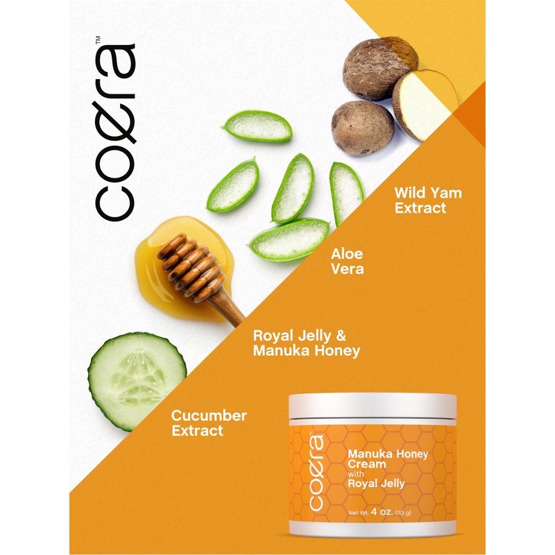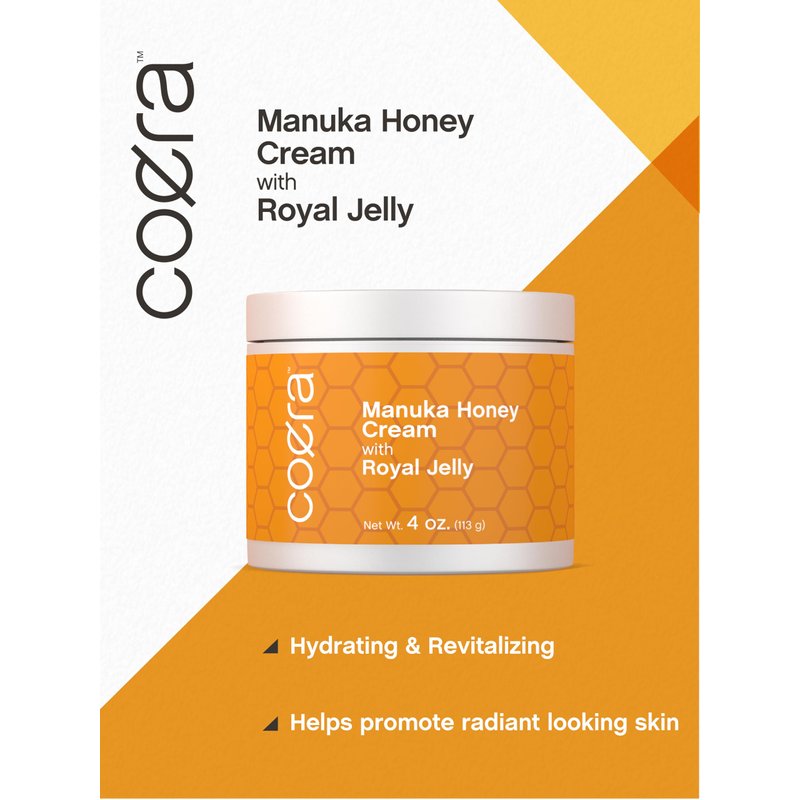 Coera Manuka Honey Cream | with Royal Jelly | 4oz | Hydrating Moisturizer for Face & Skin | Free of Parabens, SLS, & Fragrances | Packaging May Vary