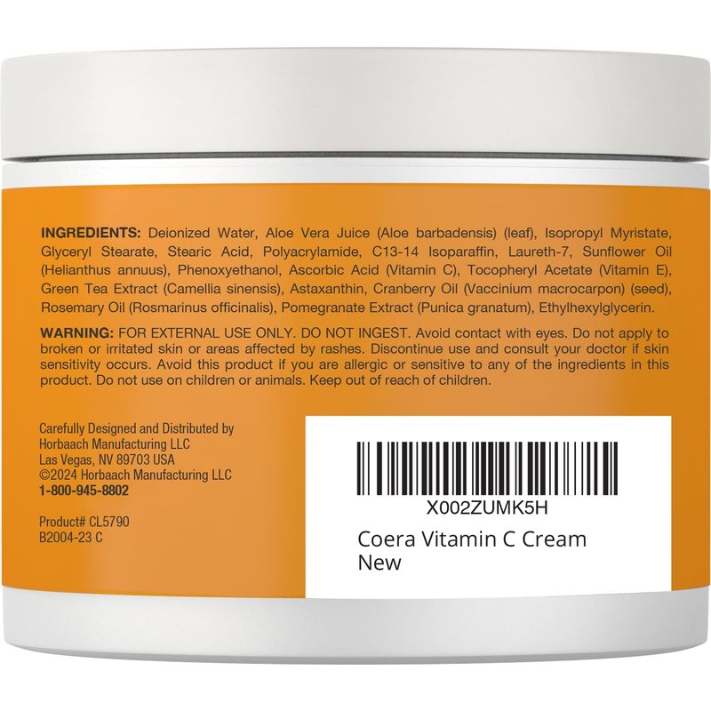 Coera Vitamin C Cream | 4oz | Brightening + Firming Formula | Free of Parabens, SLS & Fragrances | Dark Spot Masker for Face, Skin & Eyes | Packaging May Vary