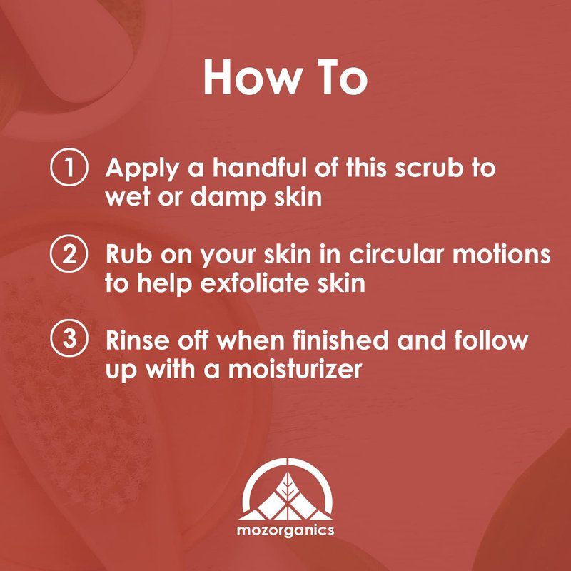 - Exfoliating Body Scrub: This body scrub cleanses your skin and pores to help remove dirt and dead skin. Regular use on damp skin will help reveal fresh, young skin underneath. Use this exfoliating scrub on your body and face to keep your skin looking youthful.