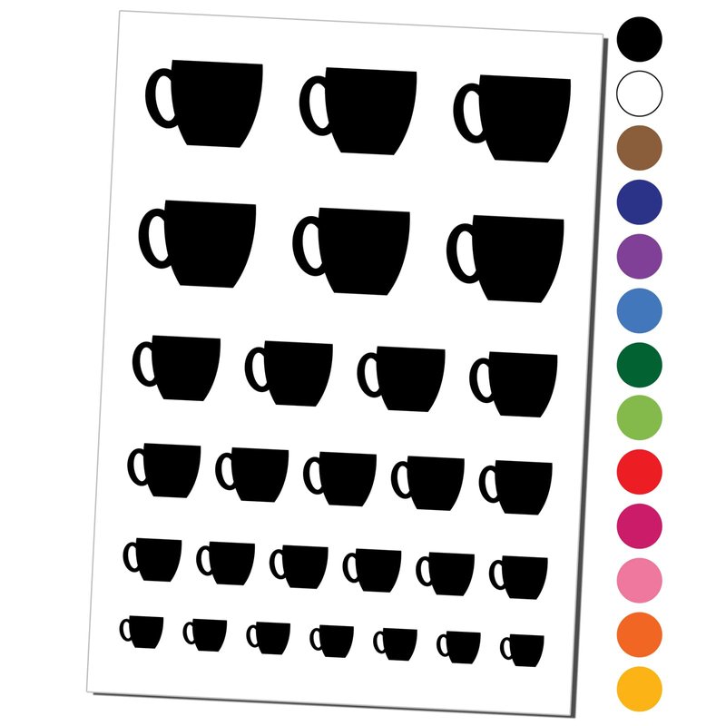Coffee Mug Cup Solid Temporary Tattoo Water Resistant Fake Body Art Set Collection - Black (One Sheet)