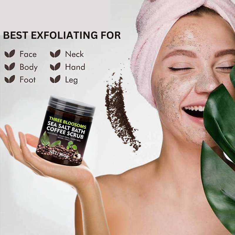 - Get glowing skin with the power of coffee: Our exfoliating body scrub is made with premium coffee beans, Dead Sea Salt Granules, Coconut Oil, Shea Butter and Leaf Extracts that gently exfoliate and glow your skin, leaving it soft and radiant (skin exfoliator for body).