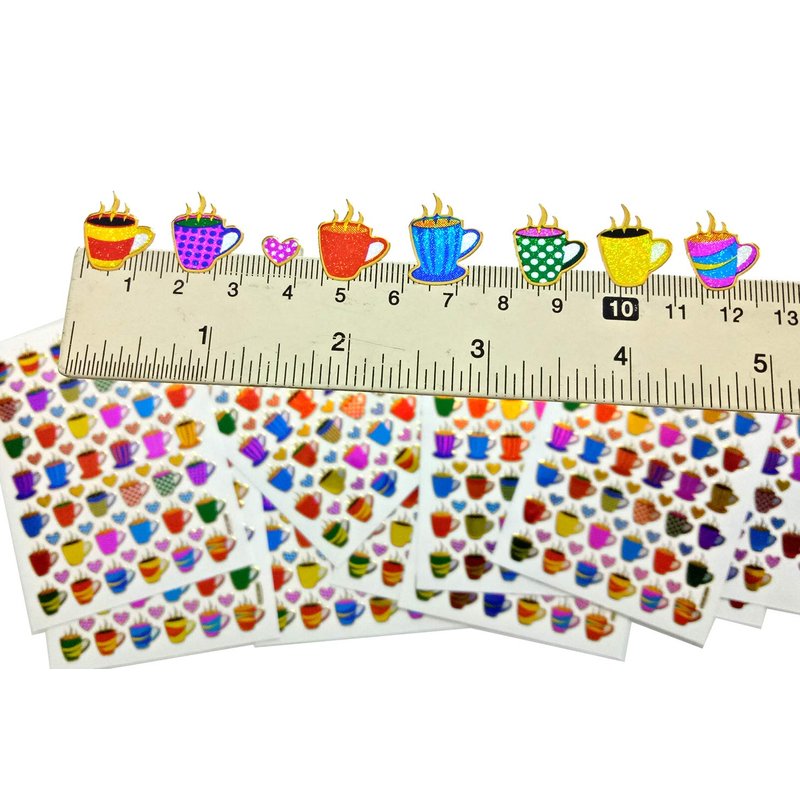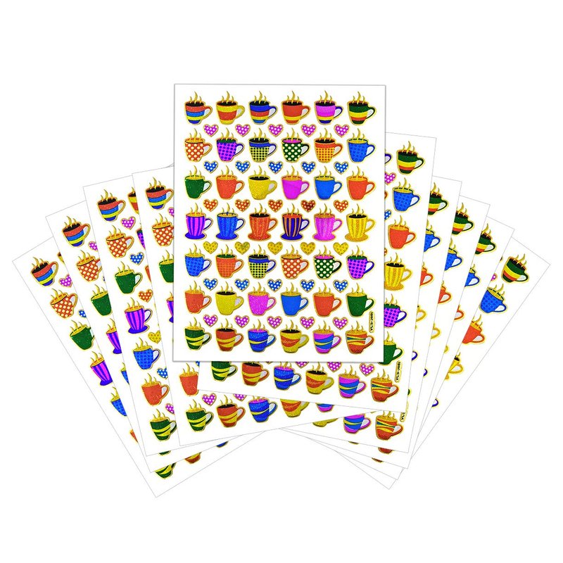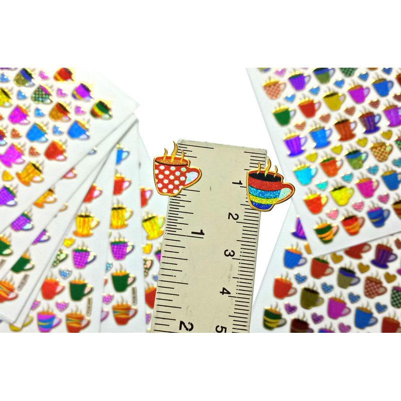 Coffee Tea Cup Waterproof Self-Adhesive Metallic Foil Decorative Scrapbook Sticker, Nice Size for Day Planner, Homemade Calendar, Journal, Letters, and Cards. (420 Stickers) (ST-10-COFFEE)