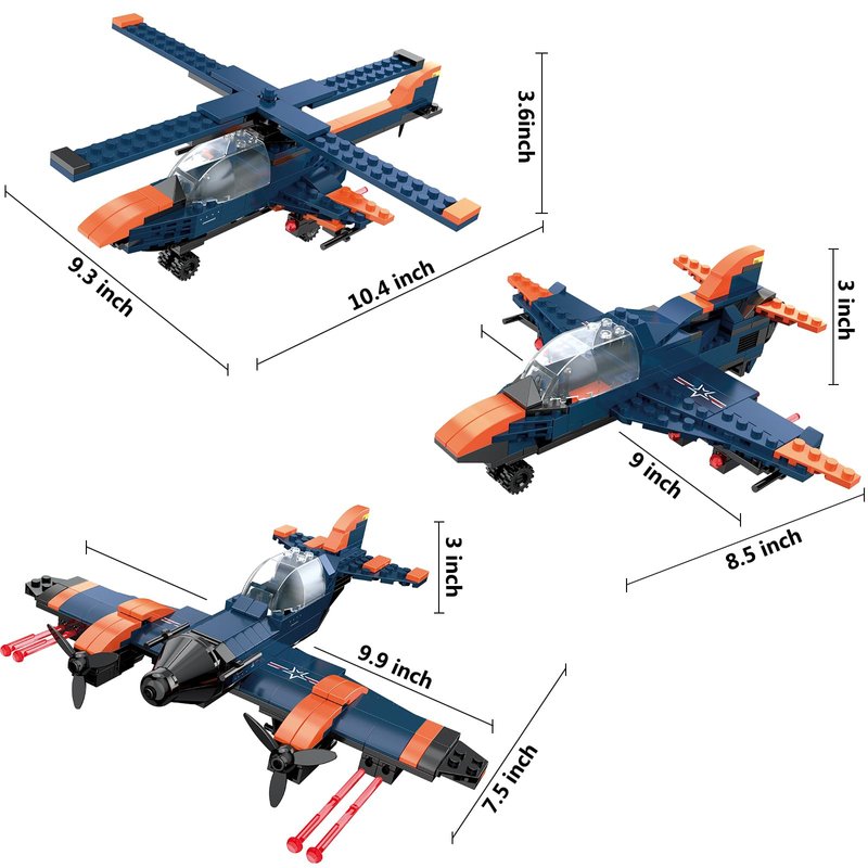 - 3-in-1 jet plane helicopter speed bomber building set: The airplane model building kit can be easily transformed into a helicopter, and the helicopter can be quickly transformed into a speed bomber. The transformation is simple and easy to operate, allowing kids to easily switch between different modes and enjoy hours of fun