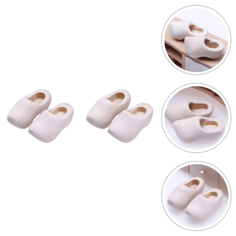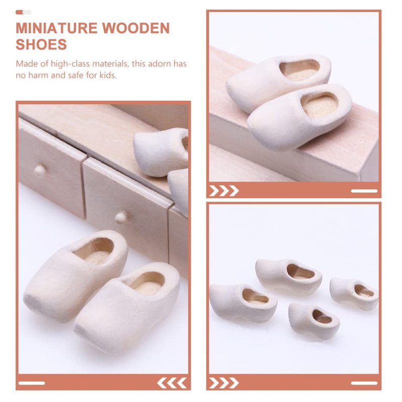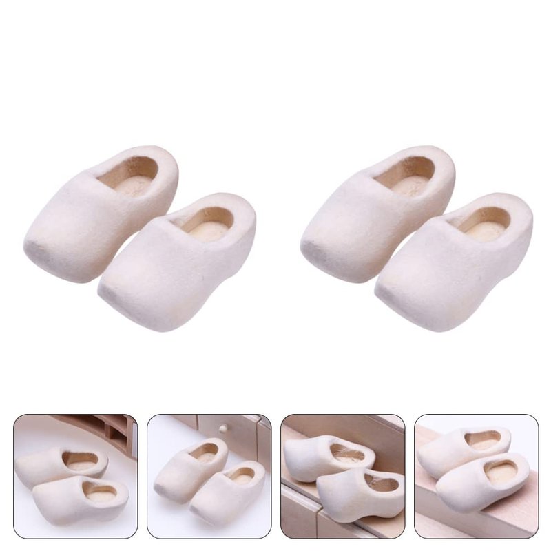 COHEALI Mini Finger Shoes 4pcs Mini Wooden Shoes Miniature Wooden Shoes Blank Wooden Shoes Mini House Decor Miniature Doll Shoes