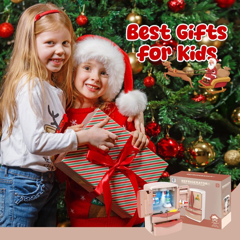 Play Kitchen Toys Fridge Refrigerator with Ice Dispenser,Mini Dollhouse Furniture Fridge Kids Kitchen Playset with Mini Play Food,Toddler Kitchen Playset Accessories for Boys Girls Christmas Gifts Unleash your child's imagination with this delightful Play Kitchen Toys Fridge Refrigerator set! This mini dollhouse furniture piece is a perfect addition to any pretend kitchen playset. Featuring a realistic ice dispenser, this adorable fridge allows kids to mimic grown-up activities and develop their role-playing skills. The set also includes miniature play food items, adding an extra layer of fun and creativity. Crafted with high-quality materials, this durable toy is designed to withstand endless hours of playtime adventures. Watch your little ones explore their culinary talents and create cherished memories as they engage in imaginative play. Suitable for toddlers and young children, this kitchen playset accessory encourages social interaction, fine motor skills, and endless storytelling possibilities. Spark your child's love for cooking and nurture their curiosity with this charming Play Kitchen Toys Fridge Refrigerator set.