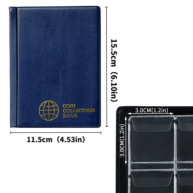 Coin Collection Album 120 Pockets - 3x3cm/1.2x1.2 inch Coin Holder Book Coin Storage Album Money Penny Pocket for Collectors Blue CS0112BL