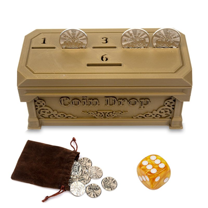- 【CLASSIC BOARD GAME】:The coin drop game set includes 1 game box, 30 Stainless Steel coins, 1 dice and 1 game instruction book.