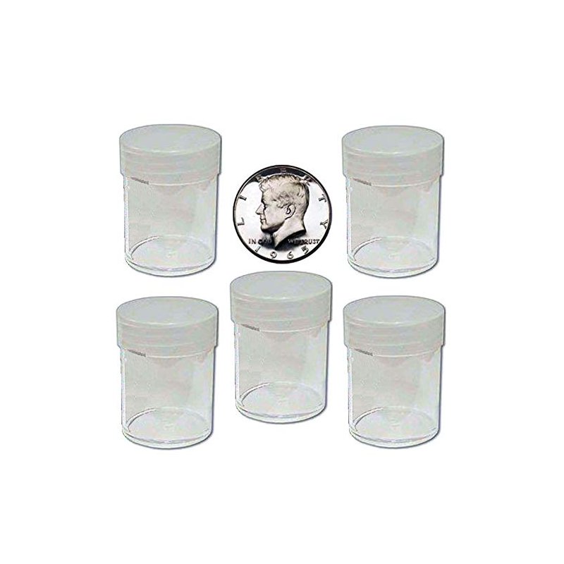 - (5) BCW Brand Round Clear Plastic (Half Dollars) Size Coin Storage Tube Holders with Screw on Lid
