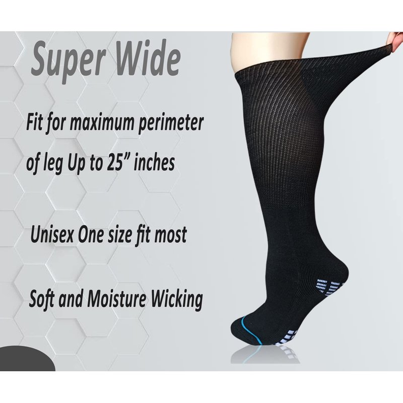 Extra Wide Diabetic Socks: The Bariatric socks can stretch up to 25" wide, extra wide top, cushioned foot, soft comfort non binding diabetic socks, one size men women socks for lymphedema bariatric diabetic swollen cast feet or leg.