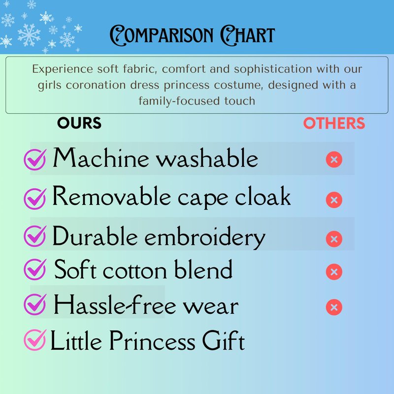 - Gloves Fit for a Snow Queen: The included blue printed gloves are made from a stretchy, satin-like fabric, ensuring a comfortable fit for ages 3-9. Your little princess can wear these gloves with ease as a toy for play time, completing her majestic outfit.