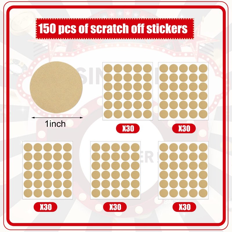 - Complete Set: you will receive 150 casino scratch off cards, including 10 Winners and 140 Sorry, along with 150 gold stickers; Sufficient quantity for play and party decoration needs
