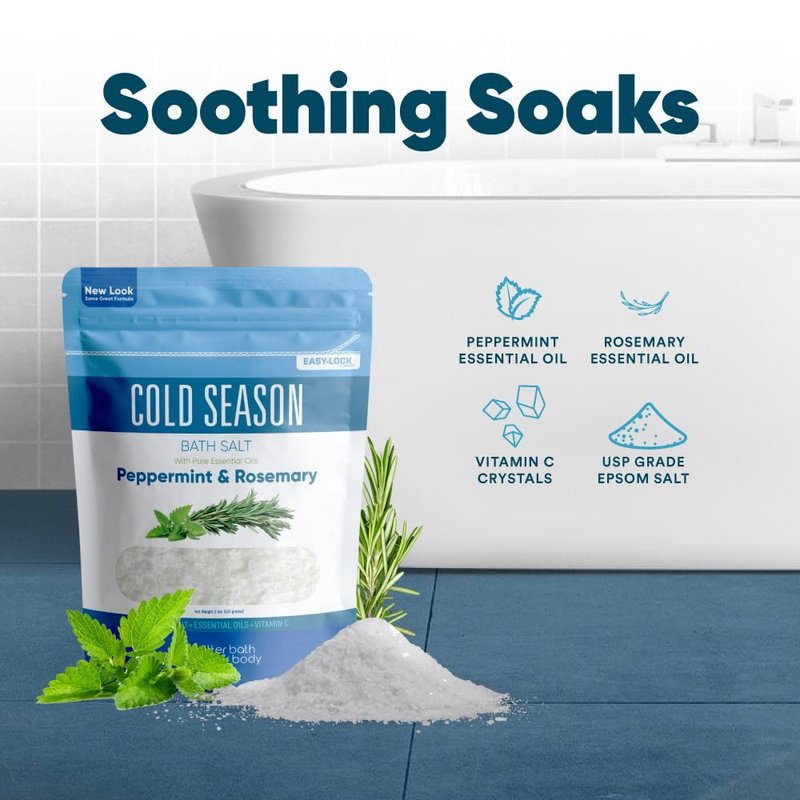 Enjoy a soothing bath soak with “Cold Season Bath Salt” by Better Bath Better Body.