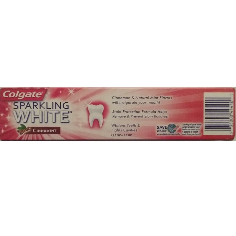 - Colgate anticavity Fluoride toothpaste sparkling white Cinnamint with cinnamon & Natural Mint flavor gel - Gluten Free