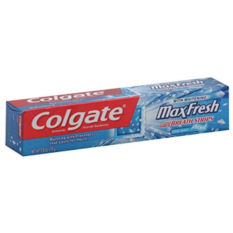 Colgate MaxFresh Fluoride Toothpaste with Mini Breath Strips + Whitening: Cool Mint (Pack of 2)