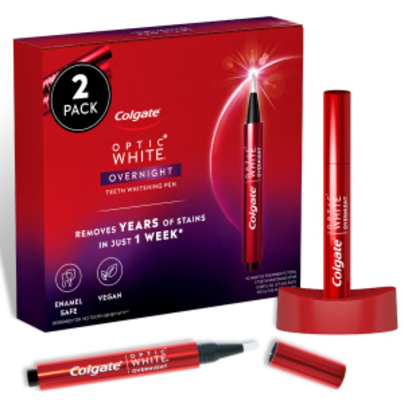 Colgate Optic White Overnight Teeth Whitening Pen, Enamel Safe and Vegan, Teeth Stain Remover to Whiten Teeth, Teeth Whitening for Sensitive Teeth, 35 Nightly Treatments Per Pen, 0.08 Oz,2 Pack