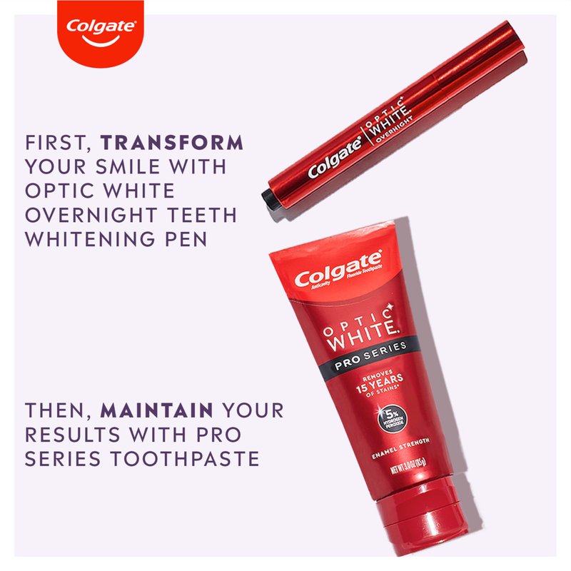- OVERNIGHT WHITENING PEN: The Optic White teeth whitener pen features a precision brush to target the surface of each tooth and a clickable top to easily control gel amount