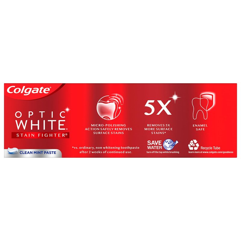 - One 4.2 oz. tube of Colgate Optic White Stain Fighter Whitening Toothpaste, Clean Mint