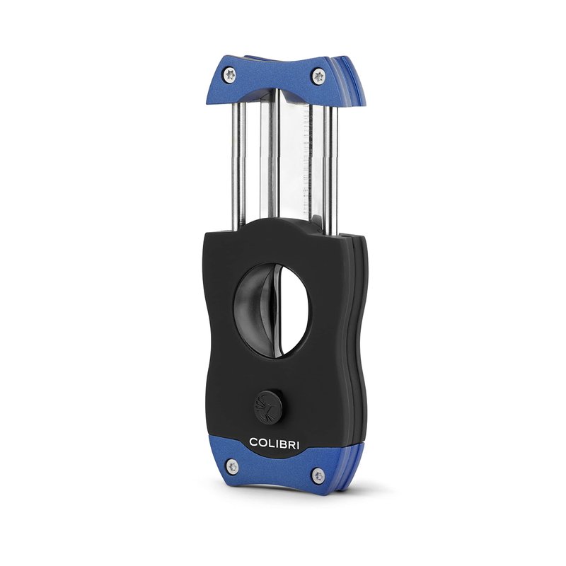 Colibri Premium V-Cut Cigar Cutter - Ergonomic Stainless Steel Spring-Loaded Blade, Ideal for up to 60+ Ring Gauge - Gift for Cigar Enthusiasts (Blue)