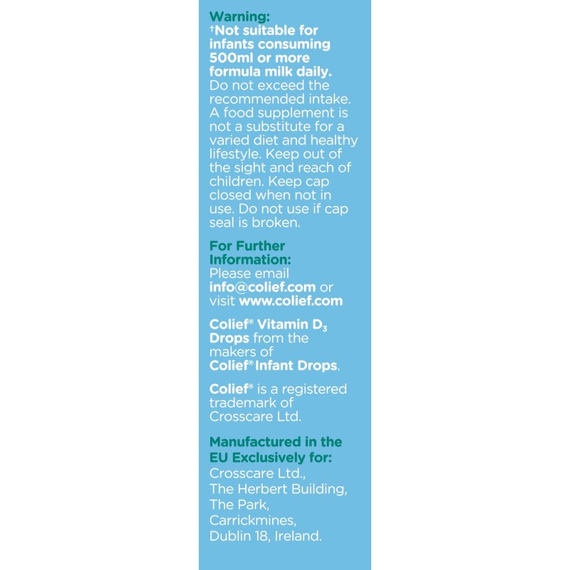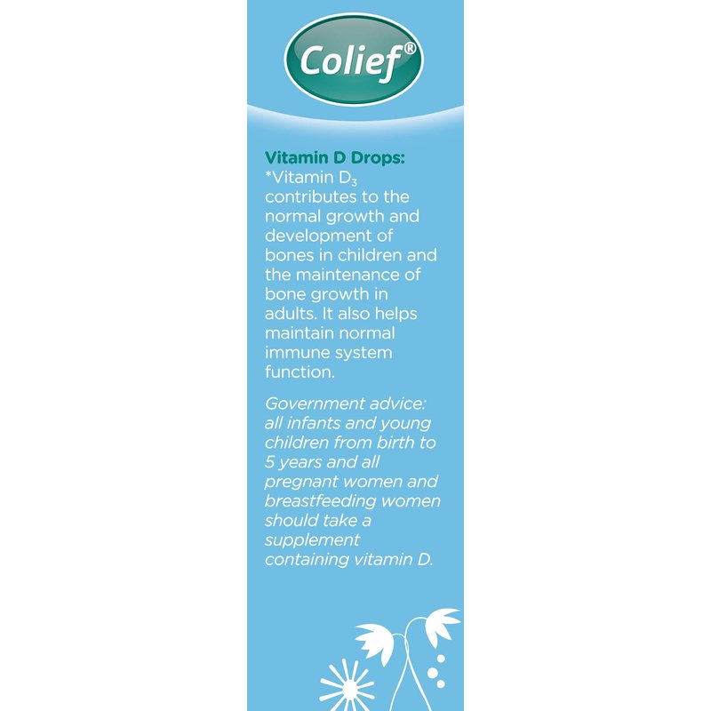 - EASY TO USE Colief Vitamin D3 Drops can be mixed with food or a drink. In the case of babies, they can also be given the drops directly by mouth.