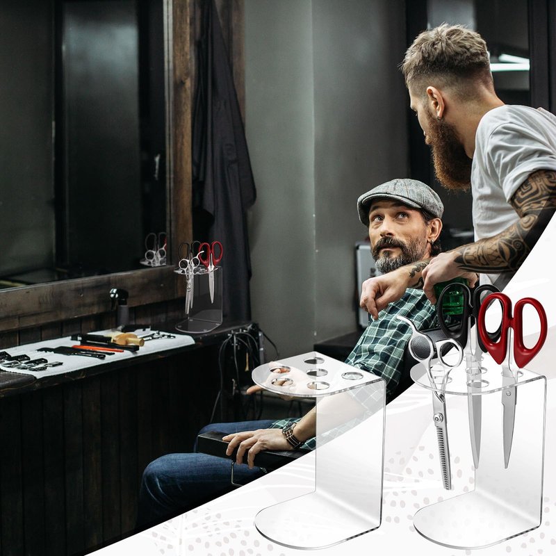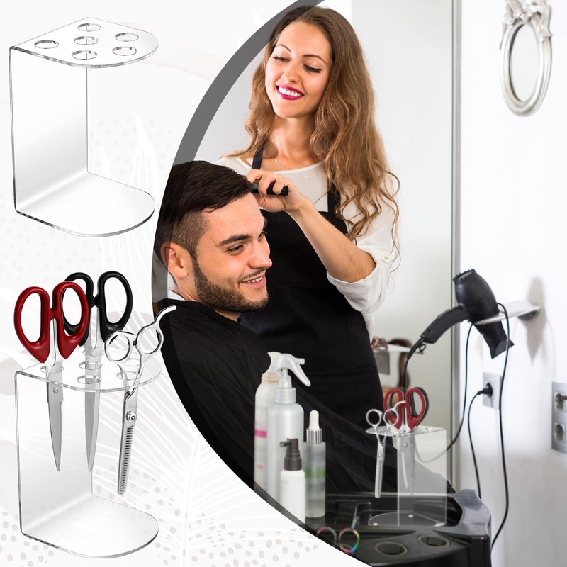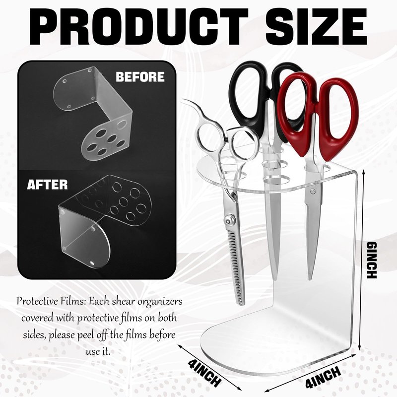 - Quality Material and Elegant Appearance: the acrylic salon scissor holder for groomers is crafted from durable, quality acrylic material, ensuring long term use; It's transparent, adding a touch of elegance to your space; Peel off the protective film on the surface before using to reveal its clear beauty; This shear holder is not only sturdy but also a good addition to your salon or personal tool collection