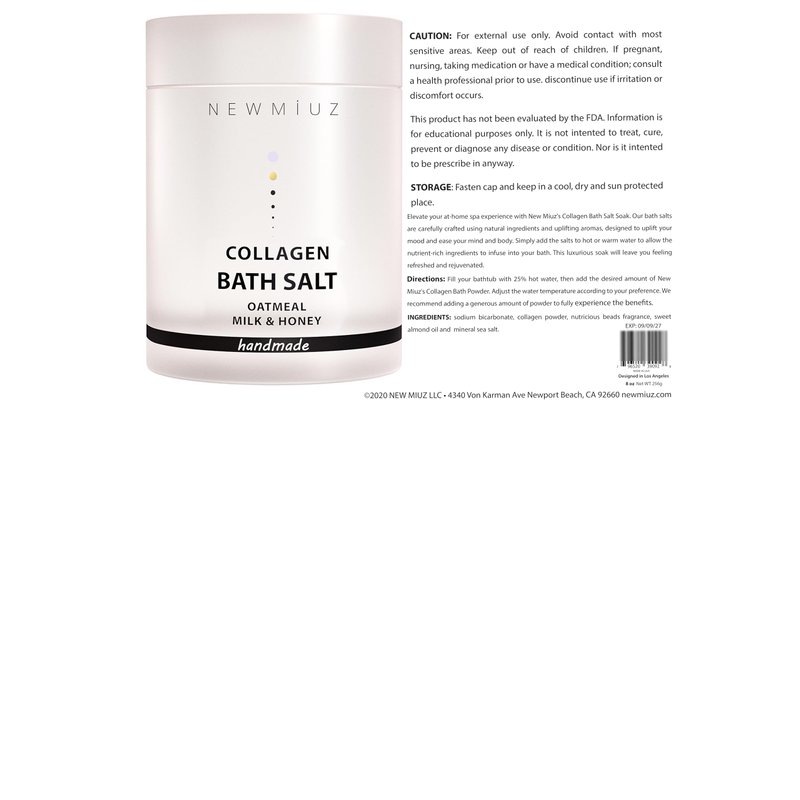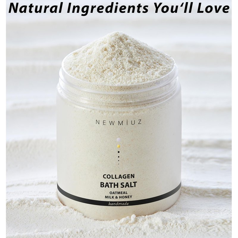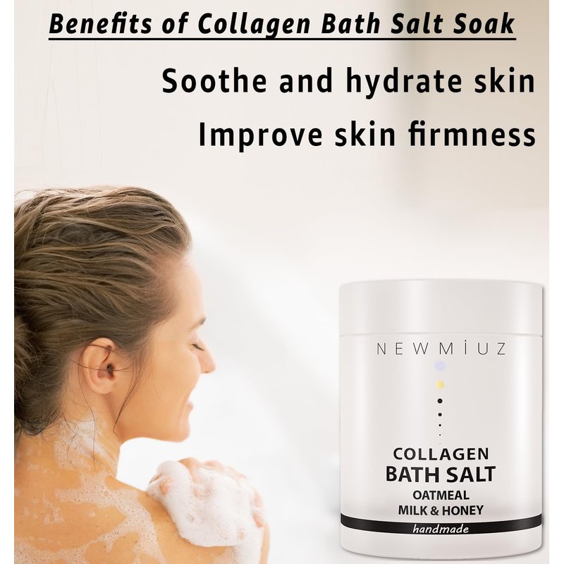 - Anti-Aging Collagen Bubble bath salt - New Miuz's luxurious oatmeal honey bath soak nourishes and hydrates skin for younger, firmer, and silky-soft skin. Our natural, moisturizing hydrating and relaxing bath soak contains collagen excellent for skin relief and recovery.