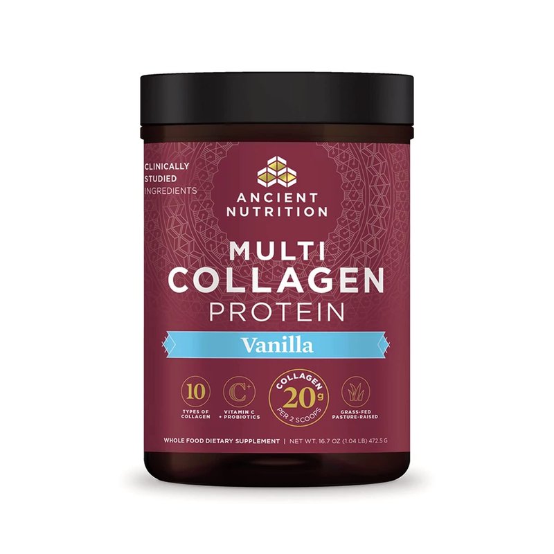 Collagen Powder Protein by Ancient Nutrition, Multi Collagen Vanilla Protein Powder, 45 Servings, with Vitamin C, Hydrolyzed Collagen Peptides Supports Skin and Nails, Gut Health, 16.7oz