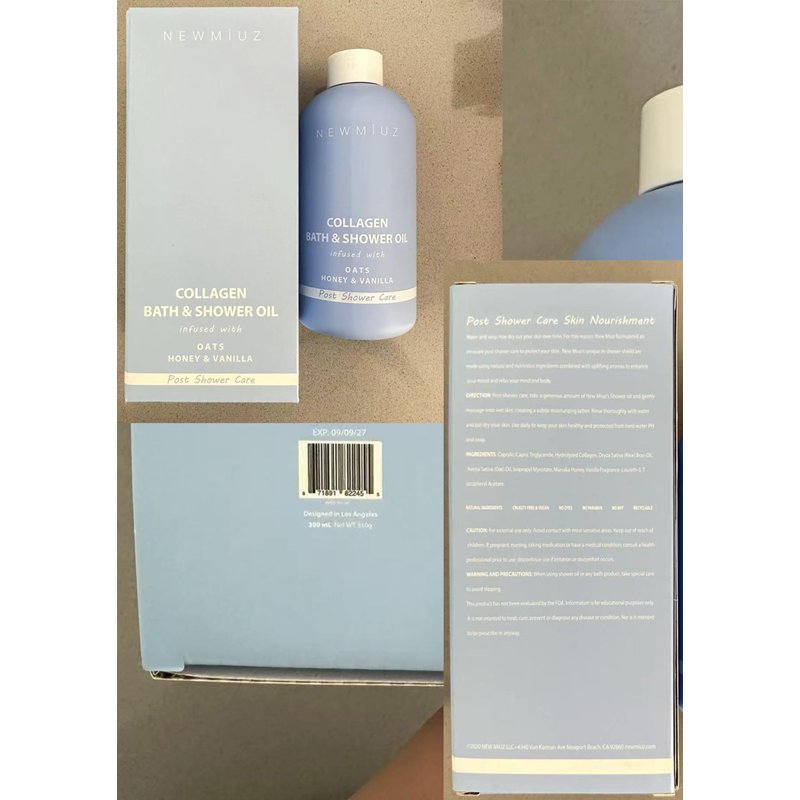 Collagen Shower Oil Body Wash - Natural Post Shower Care For Dry Skin in Shower Cleansing & Softening Moisturizing lotion Body & Legs Non Greasy Oatmeal Honey Vanilla Spa Self Care Spa Gift 10 Fl. Oz