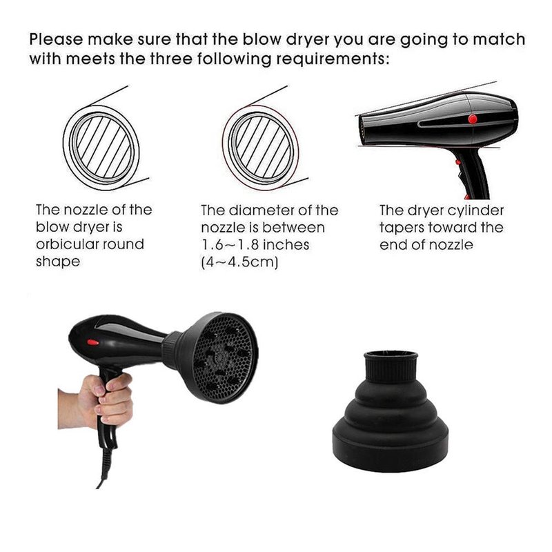 • Pro Tips for Best Results: To ensure optimal performance, please keep in mind that our diffuser is not suitable for hair dryers with AC or DC fan motors or high settings above 2000W. We recommend starting with low heat or low-speed settings. Also, double-check that your hairdryer nozzle size (1.65-1.9 inches/4.2-4.8cm) matches before making a purchase.