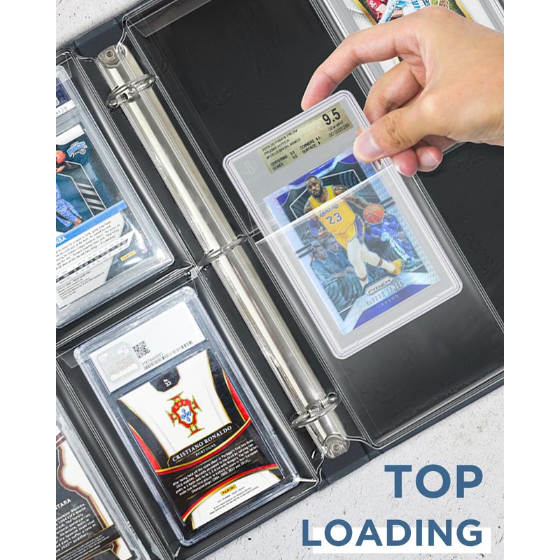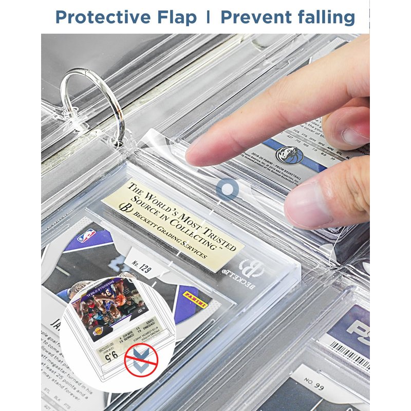 - OMNIPOTENT MATCHING: The binder sleeves for graded cards are top loading with protective flap. Ensure the safety of the precious graded cards. Cases fit & stay secure as sleeve pages are turned. Fits PSA, BGS, BCCG, CGC card slabs and similar size graded sports cards. Also fits one-touch magnetic card slab.