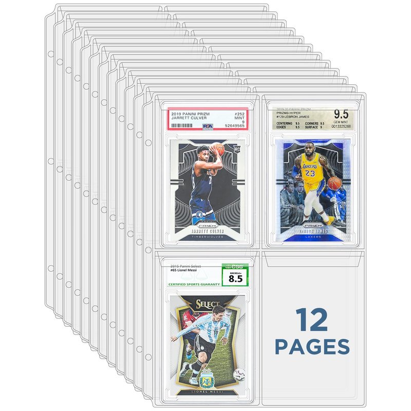 CollectHall Graded Card Sleeves, PSA Graded Card Slab Binder Pages for Storage & Display, Compatible with PSA, BGS, CGC Graded Sports Cards and One-Touch Magnetic Card Holders- 12 Pages
