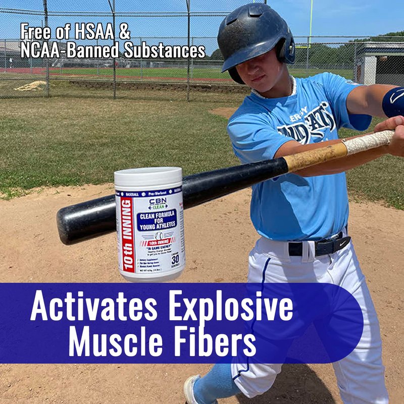 CLEAN FORMULA FOR YOUTH BASEBALL & SOFTBALL PLAYERS - Baseball & Softball games are long and so are practices! The weather is hot, the sun is draining, and the only shade is in the dugout. To survive and play well you need to start off with an extra reserve of the 2 things Mother Nature is zapping from you – Stamina and Explosive Energy. Our CBN 10th Inning Baseball & Softball Pre-Workout & In-Game Energy Booster accomplishes those 2 things for young athletes by providing a CLEAN formula to keep the body not just hydrated but have energy in reserve when it’s their turn at bat, or to make that game changing play! Let’s set the scene, it’s the dog days of summer, it’s down time between tournament games and you just played your heart out giving it your all. You have no energy left in the tank from the sun beating down on you all game, but you’ve still got another 2 dragging hours of intensity ahead of you. You take a sip of your CBN 10th Inning Baseball & Softball Pre-Workout & In-Game Energy Booster next to you on the dugout bench. Before you know it, the next game rolls around, you finished your 10th Inning and you feel as good as new, ready to react to whatever pitch gets throw to you or ball gets hit your way, confident you’re going to play your best. CBN 10th Inning works off the field as well as a Baseball, Softball In-Game Energy or Pre-Workout supplement. 10th Inning contains all the Vitamins, Minerals, Proteins, Electrolytes, Creatine, BCAA’s and other Amino Acids that regulate & oxygenate blood flow, promote muscle growth & repair, increase stamina & decrease muscle soreness to ensure that Baseball & Softball players will be able to consistently perform their best, no matter the circumstance.
