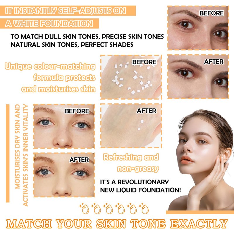 - 💇【Adjust colour automatically】Color changing liquid foundation has a unique colour matching formula, which can be self-adjusted immediately after application, and the final colour presented is highly matched with your skin tone, no matter what skin tone can be used.