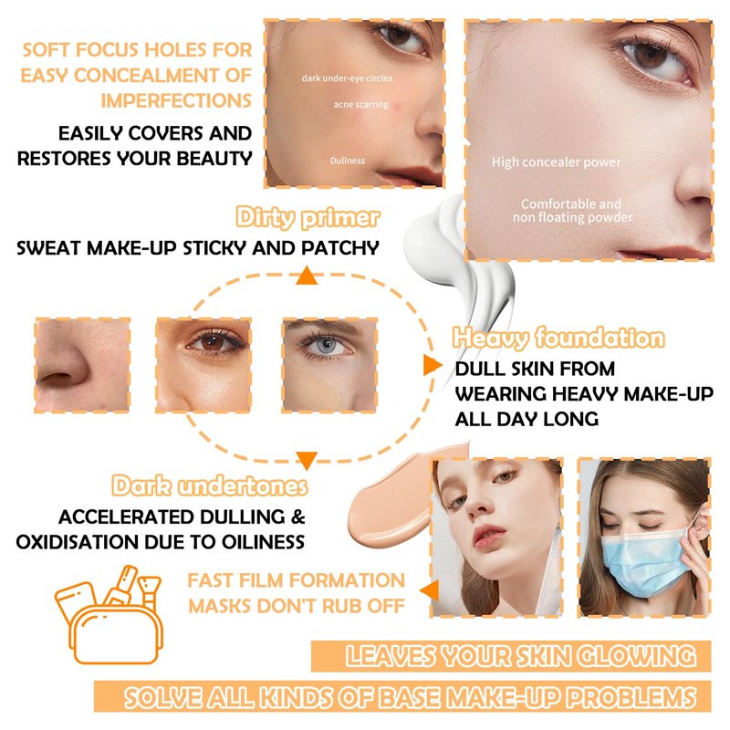 Full coverage face primer base makeup set provides ideal coverage in an instant, it is easy and quick to create a flawless face primer with a very long lasting finish, it will be perfect if you want a long lasting makeup look.