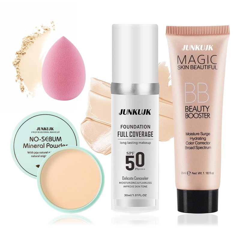 Color Changing Full Coverage Liquid Foundation Makeup Gift Set,Moisturizing BB Cream for Women,Flawless Loose Setting Powder Face Primer Base Makeup Kit With Makeup Sponge