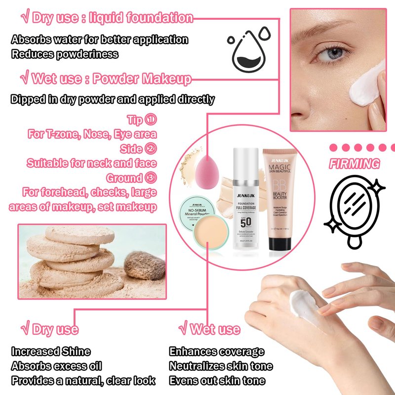 🎯The colour changing foundation has a light texture that is easy to apply, perfect full coverage, moisturising BB cream and long-lasting setting powder, making it a great choice for a daily make-up kit.