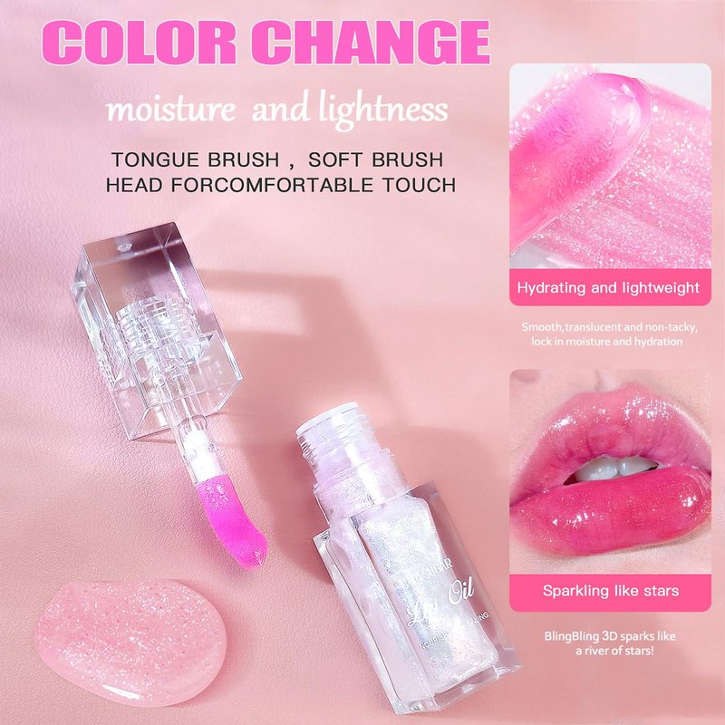 - 【Magic Color Changing Lip Oil】: The glimmering particles in our lip oil catch the light, creating an enchanting effect that enhances your lips and adds a touch of elegance to any occasion. Versatile, use it as a hydrating lip gloss, plumping lip balm, or a subtle glimmer lipstick.