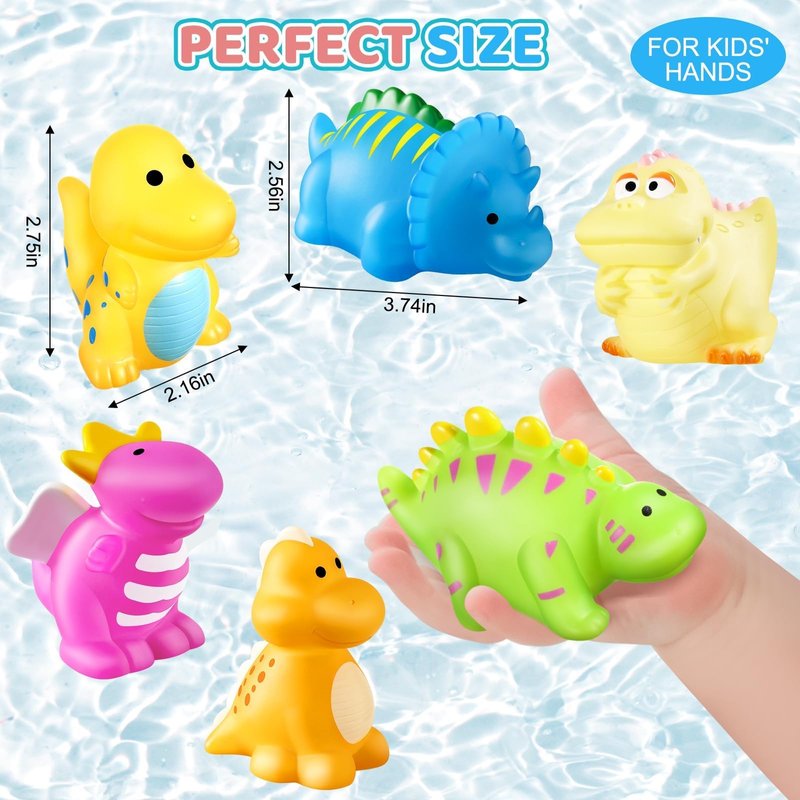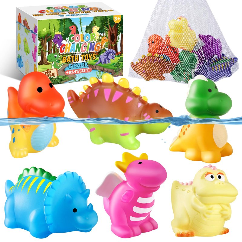 - 6 Packs Dinosaur Bath Toys for Kids: Color changing set includes 6 packs of dinosaur toys with a mesh bag for toddlers and kids. There are 6 vivid designs of dinosaurs. They are perfect baby bath toys, kids' water toys, bathtub toys, party favors, goodie bag stuffers fillders, stocking stuffers, classroom prizes and so on
