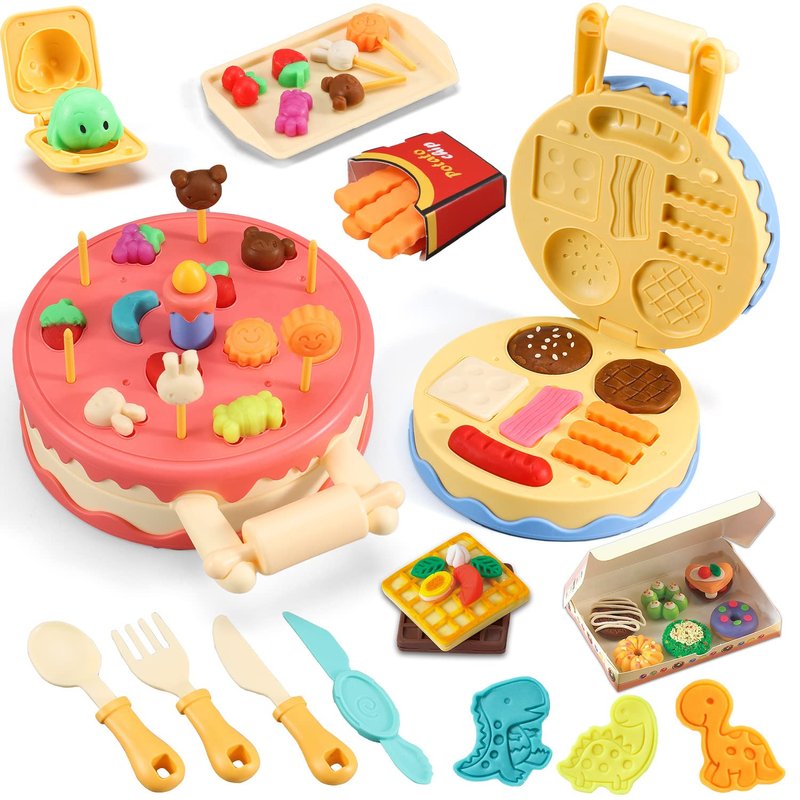 - 5 IN 1 TOYS: Color dough, dinosaurs, kitchen, pretend play, birthday cake, a set of toys to meet all the needs of children, a variety of ways to play, buying one set is equal to buying five sets. It is colorful and full of fun, experience the wonderful journey of color dough
