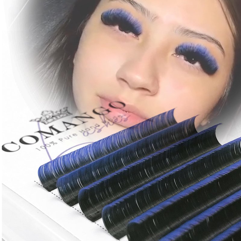 Color Easy Fan Lashes 0.07 C Curl Ombre Blue Volume Lash Extensions 9-16mm Mixed Lash Tray Color Lashes Extension Self Fanning 2D-10D Volume Eyelash Extensions by CoMango