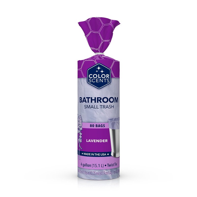 Color Scents Small Trash Bags - 4 Gallon, 80 Bags (1 Pack of 80 Count), Twist Tie - Lavender Bag with Lavender Scent (1 Pack of 80)