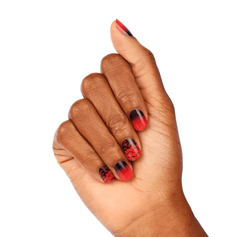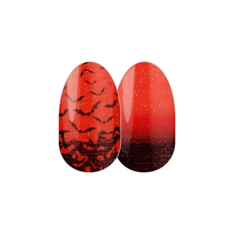 Hide in the shadows of darkness with Do Your Fang, a glittery black to orange red ombré shade with a swarm of bats. Each set includes 16 double-ended nail polish strips. Easy peel and apply with no dry time. Just apply and go! 100% Real Nail Polish Strips made in the U.S.A.