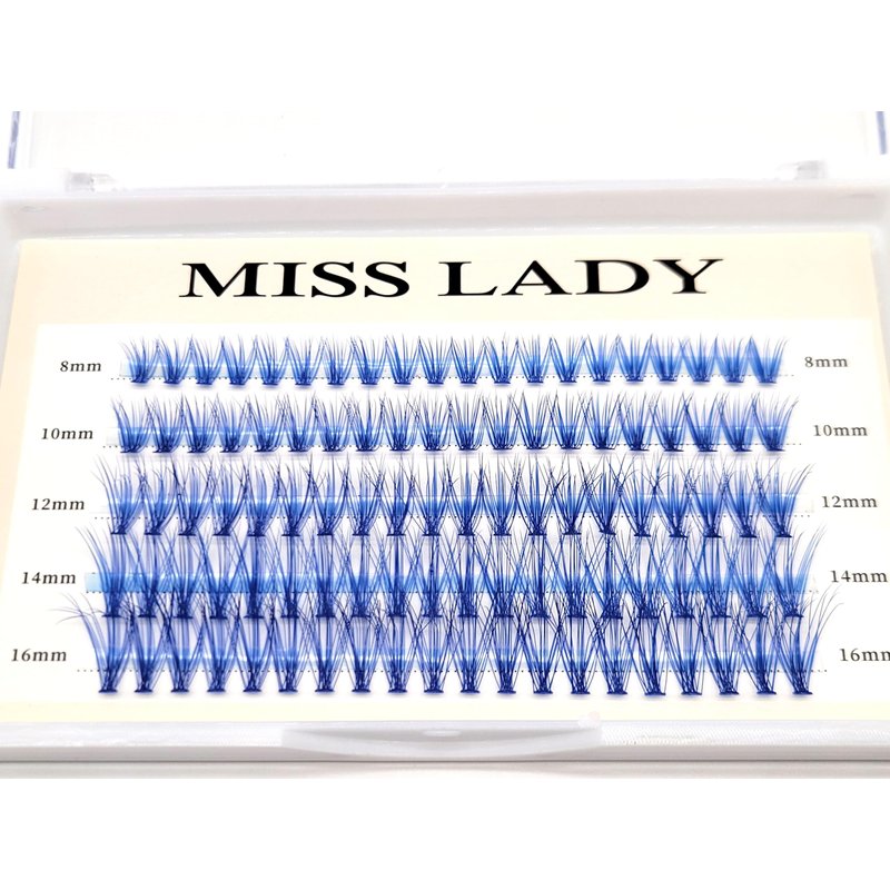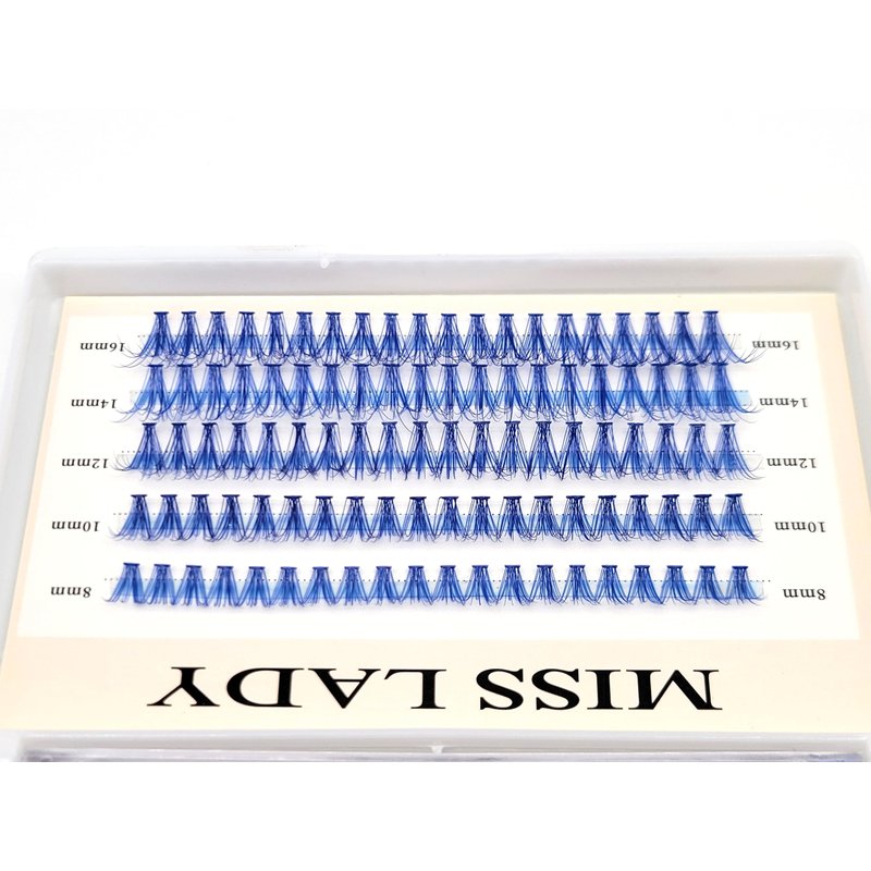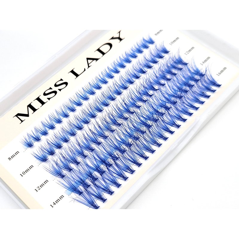 Colored Blue Lash Clusters, 3D Volume 20D Curl C, Thickness 0.10mm, Length 8-16mm Mixed Tray, 100 PCS of Blue Eyelash Clusters, Faux Mink Blue Individual Lash Extensions DIY