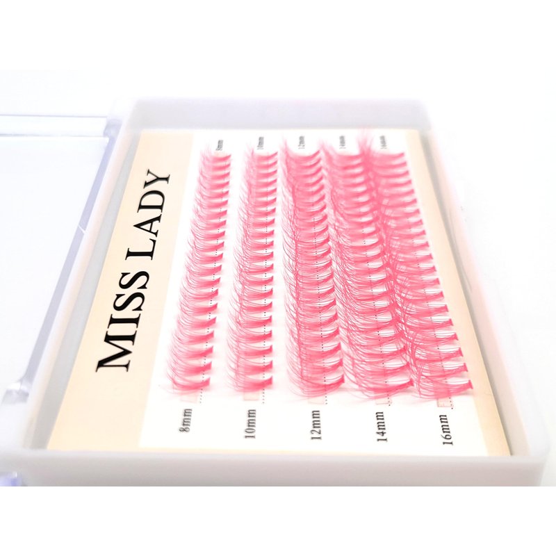 Colored Pink Lash Clusters, 3D Volume 20D Curl C, Thickness 0.10mm, Length 8-16mm Mixed Tray, 100 PCS of Pink Eyelash Clusters, Faux Mink Pink Individual Lash Extensions DIY