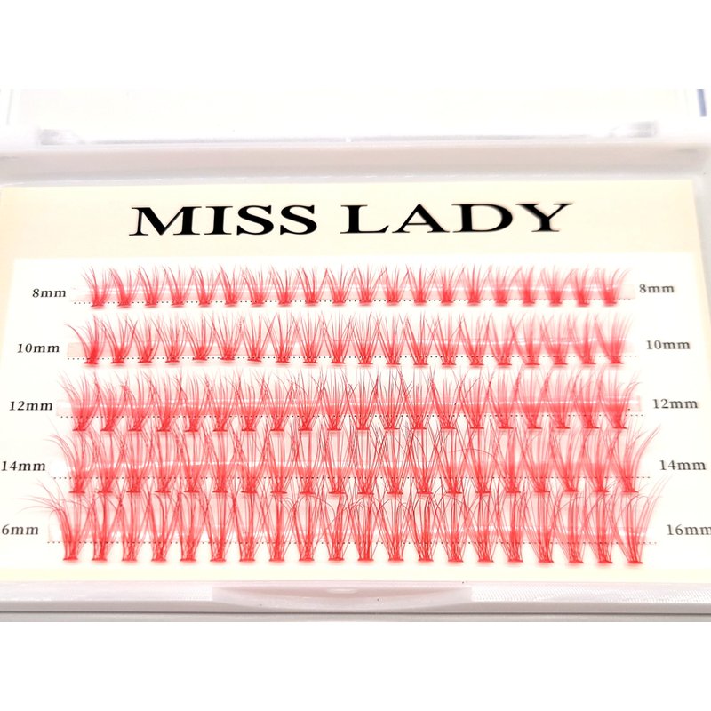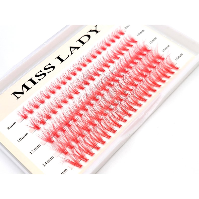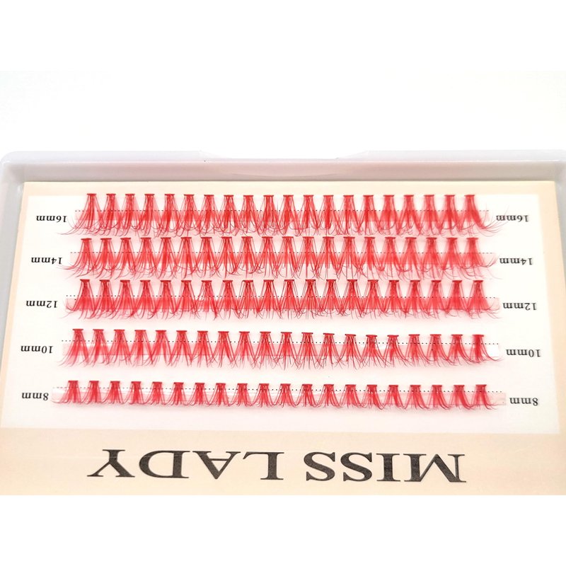 Colored Red Lash Clusters, 3D Volume 20D Curl C, Thickness 0.10mm, Length 8-16mm Mixed Tray, 100 PCS of Red Eyelash Clusters, Faux Mink Red Individual Lash Extensions DIY