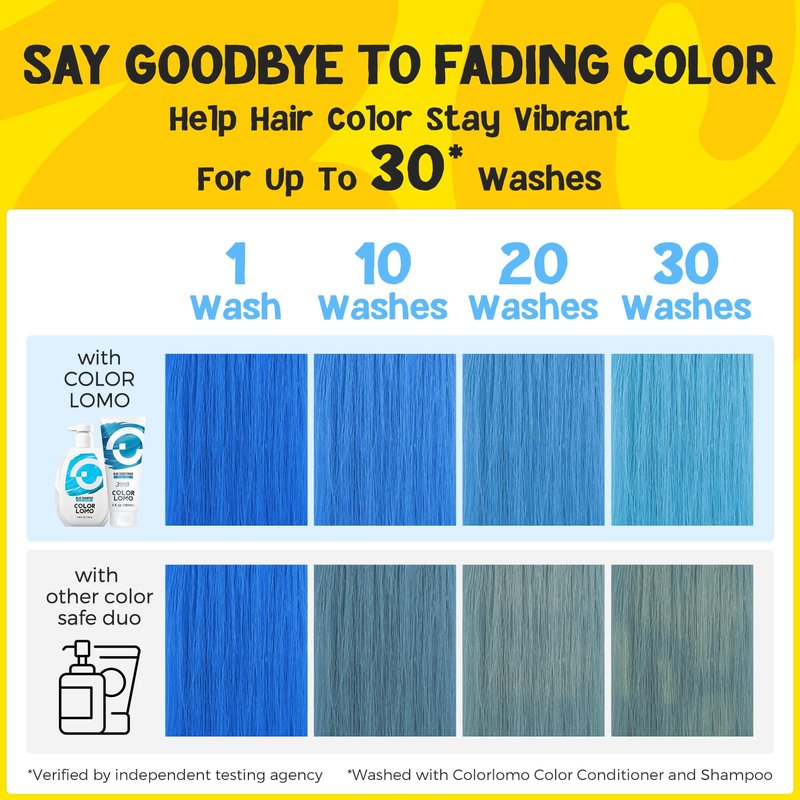 - VIBRANT COLOR: COLORLOMO Blue Conditioner leaves your hair a flawless sapphire blue hue. Perfect for platinum to medium blonde bleached hair. Tints hair as dark as 7 degrees.