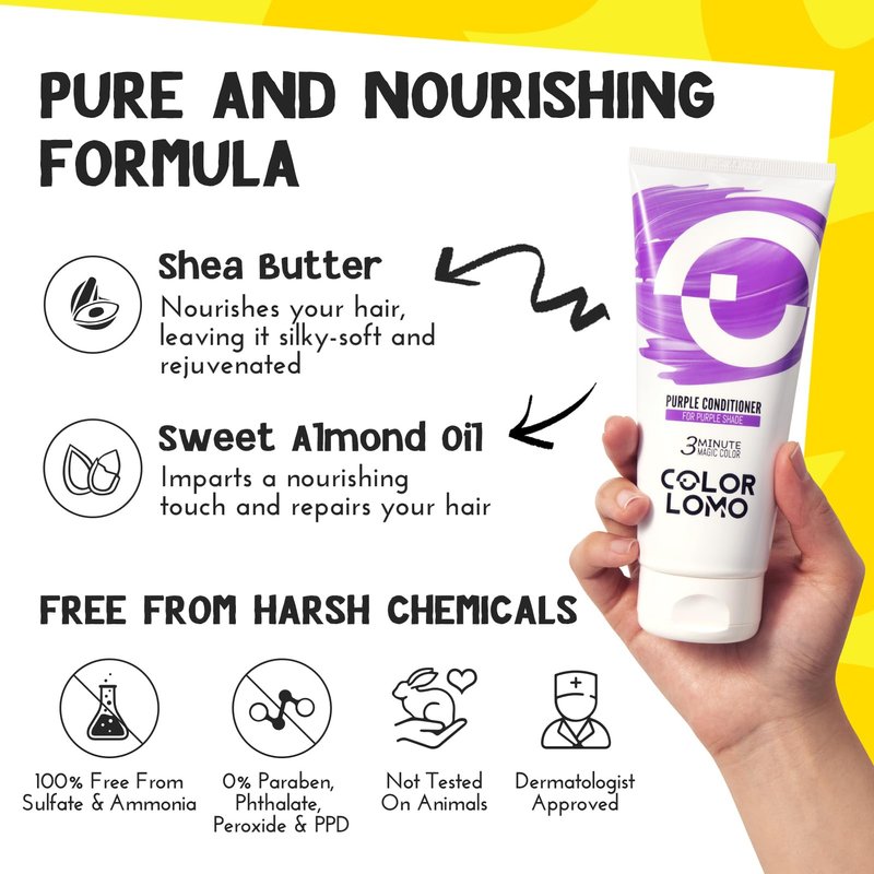 - SAFE & DERMATOLOGIST APPROVED: Prioritize your safety. Colorlomo's Color Depositing Conditioner is not just about beauty, it's about trust. Our product is approved by dermatologists in the USA, ensuring a safe and reliable choice for your hair care routine.